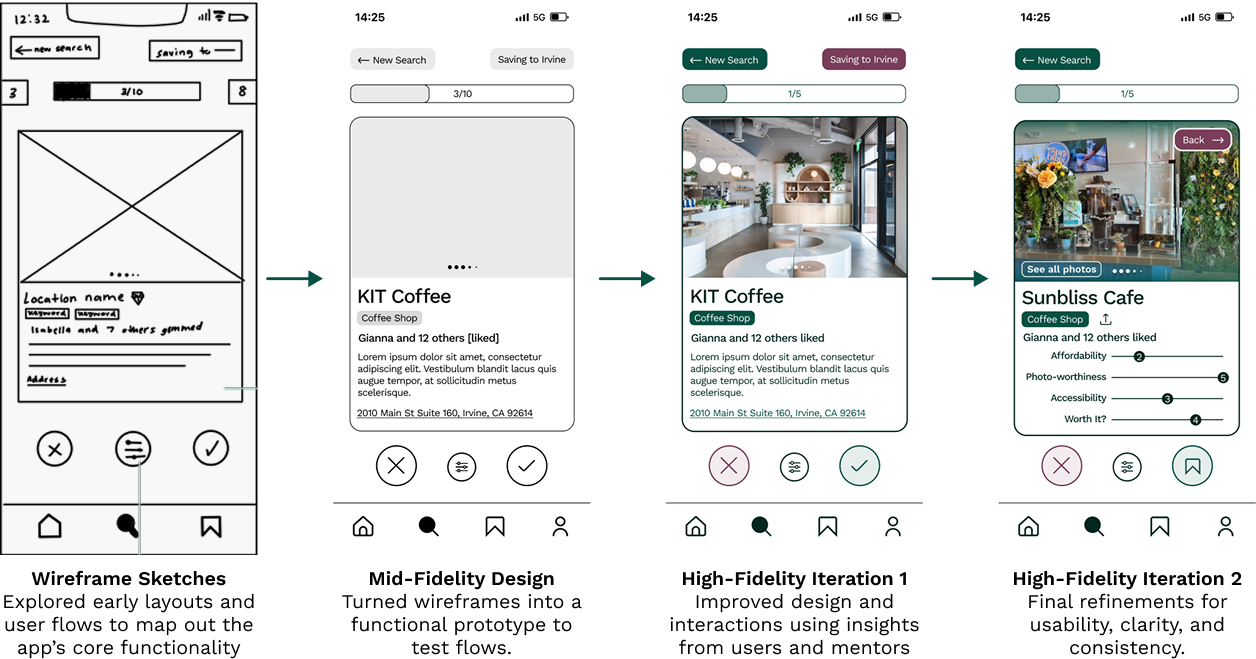 Our original concept was broad, basically a location search tool. With mentor guidance, we honed in on hidden gems specifically. That constraint gave GEM a clear identity and made every design decision easier to evaluate. It also, ultimately, led to winning first place in the fellowship.