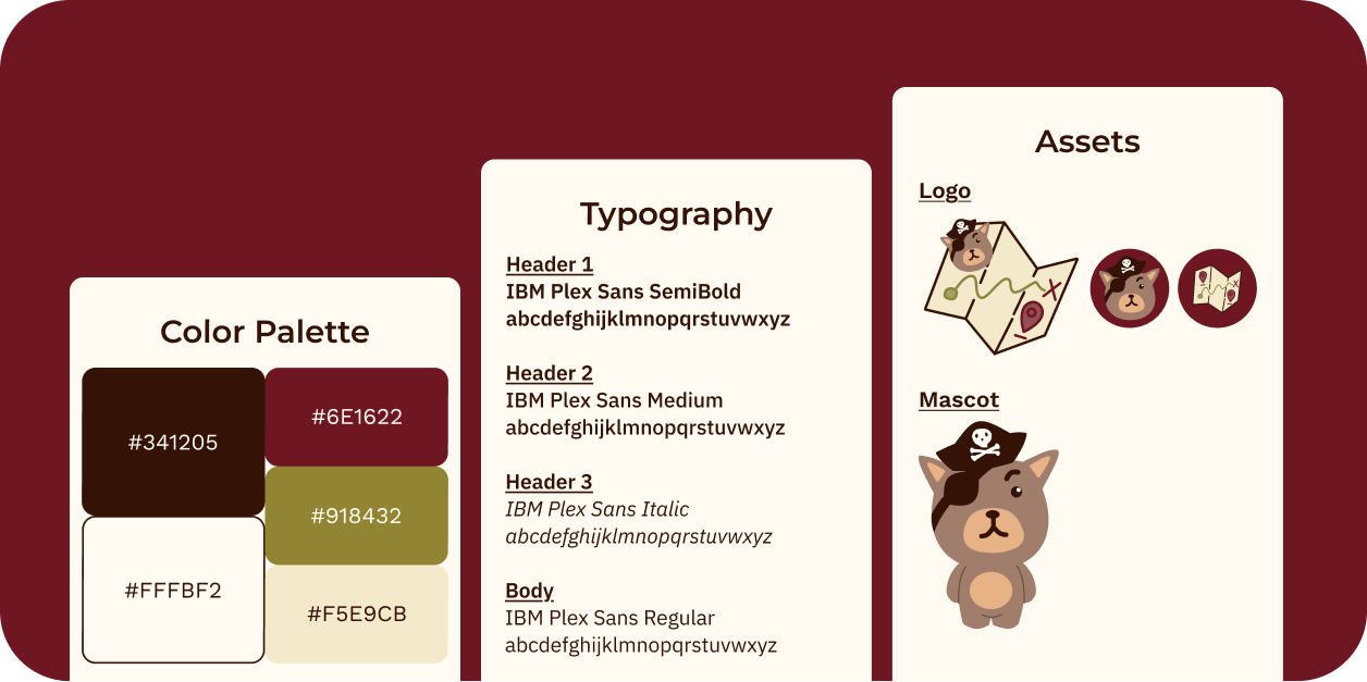 Roam's visual identity leans into the spirit of adventure: warm, earthy, and a little playful. The mascot, a small pirate bear, sets the whimsical, exploratory tone without sacrificing the legibility and professionalism the interface needs to actually function.